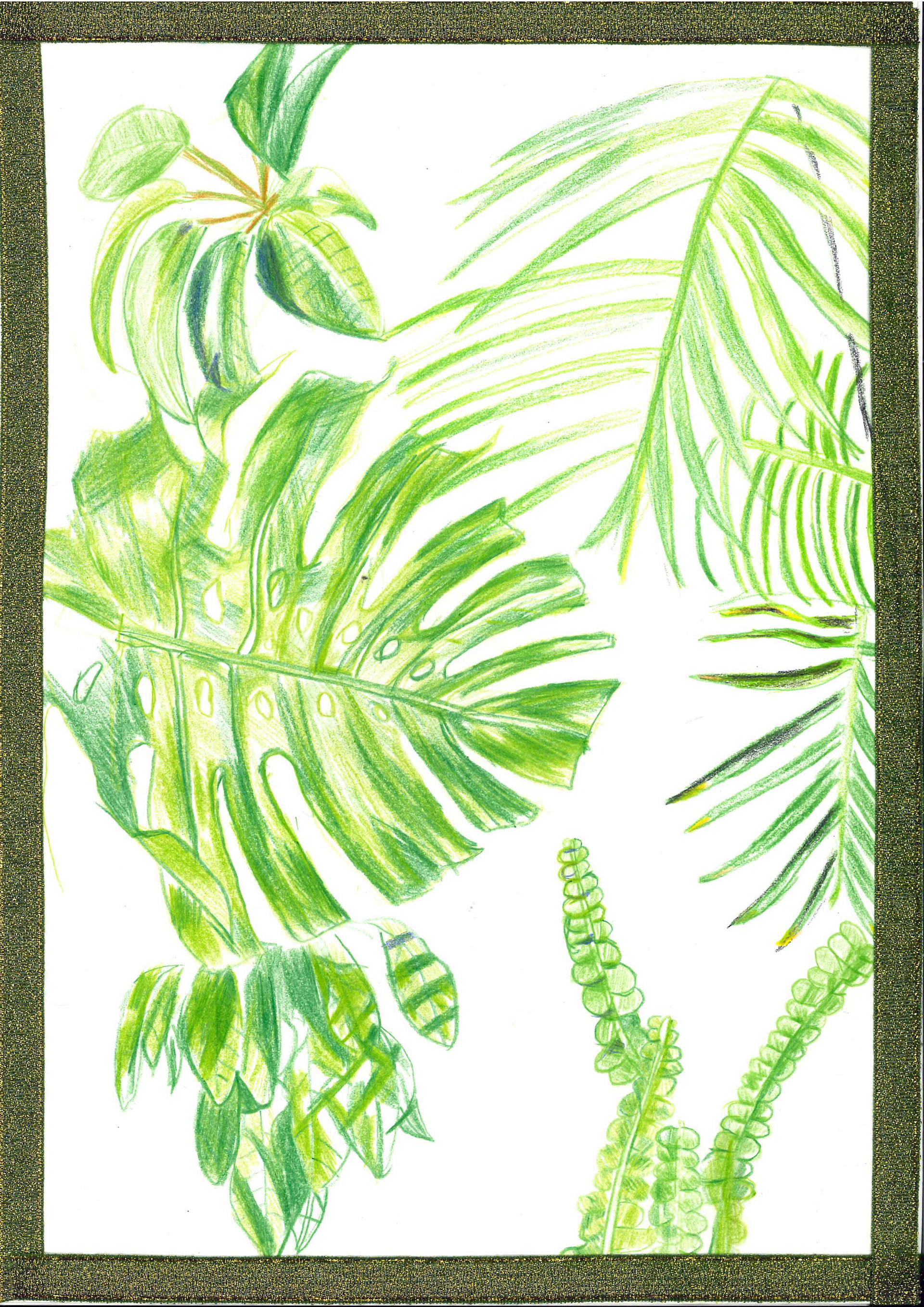 I went to the garden, and documented the various plants shape, then I used colour pencils to drawing.