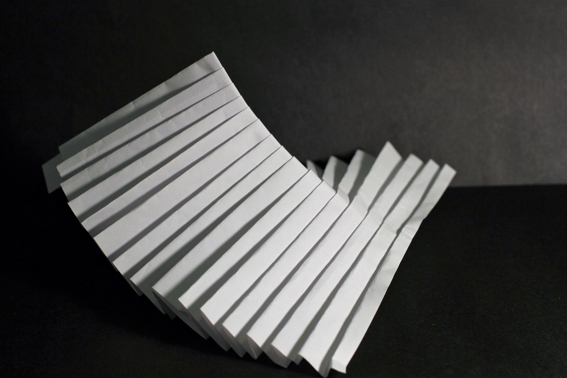 The picture shows movement principle design. this design like sea wave. Recurrence of elements with tilde, and high and low lines, lines is same but The direction of the fold is different. Fold a paper, create a movement feeling.