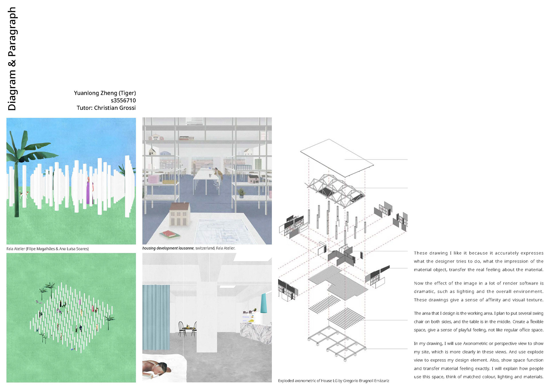 Using Revit as a primary tool, to design a office. Views creating in Revit / Write up a paragraph to outline strategies in communicating intent / Visualisation/Diagram creating.
