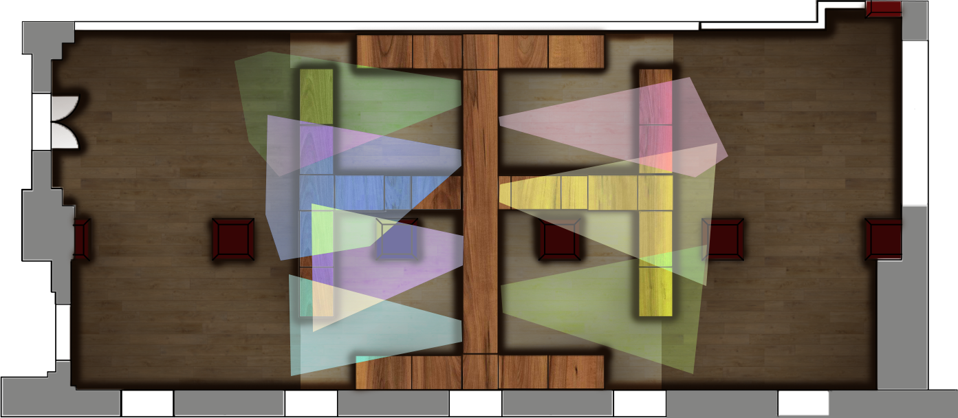 This plan used Rhino to export scale drawing, then used photoshop to add light and texture. Day time I added sunlight. Night time I added lighting effect to plan.