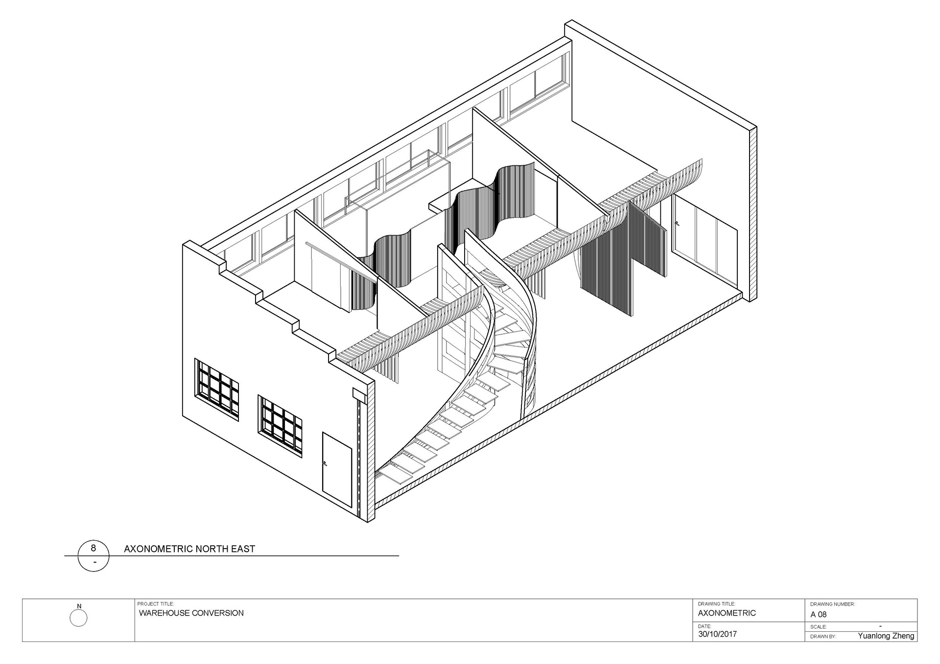This Sketch design chef activity space mainly in the East side, Middle space is big public space, Living room and bathroom. Photograher maily zoon is in the west and first floor side.