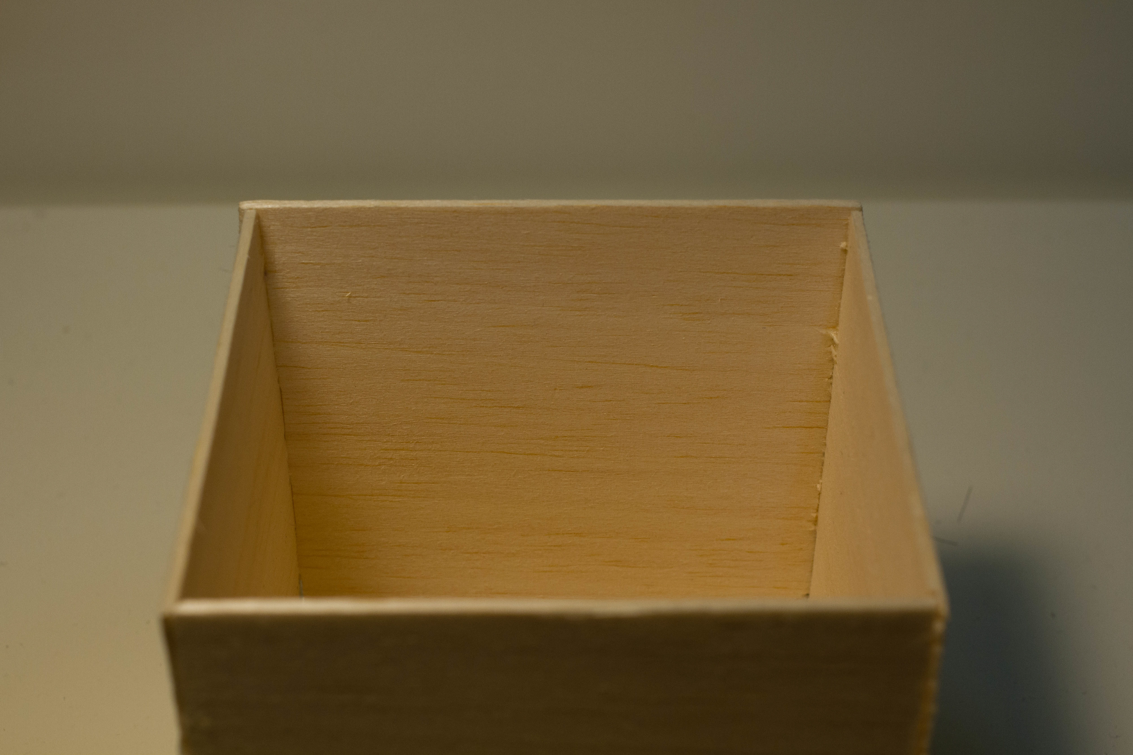 This cube size is 100x100mm. I used 3 joinerytechniques, figure, mitre and pigeon, such as I cuted both side 45 degree and stick together.